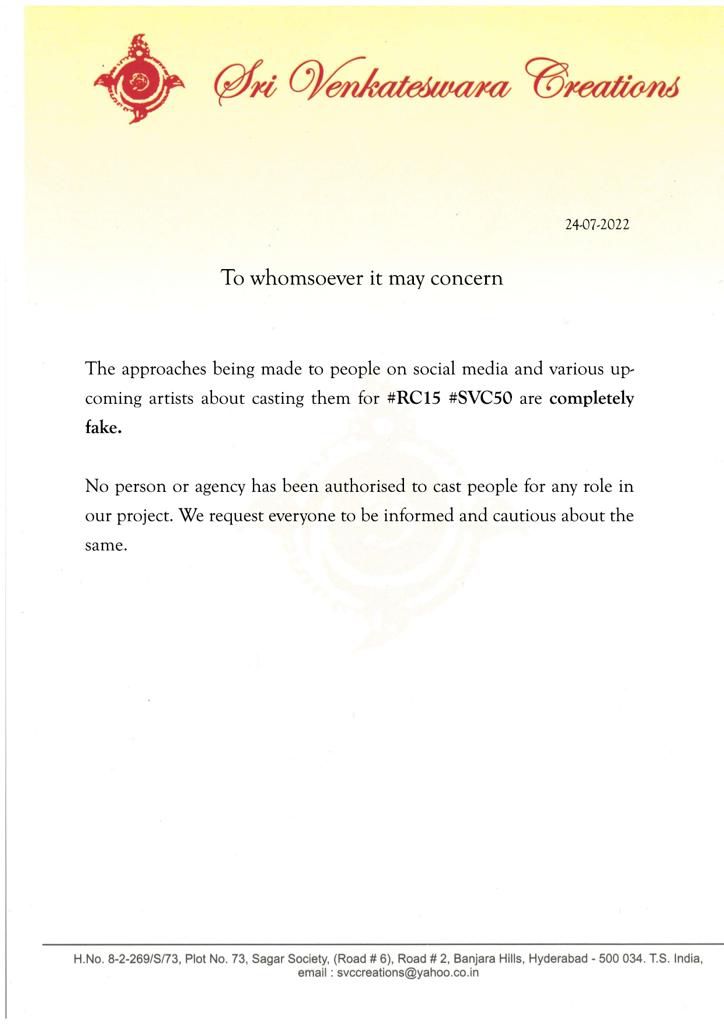 Expectations are high for Ram Charan's upcoming project with star director Shankar. The project referred to as RC15 is progressing at a brisk pace. In the meantime, the makers came up with caution. It is known that reports spread viral that the ma...