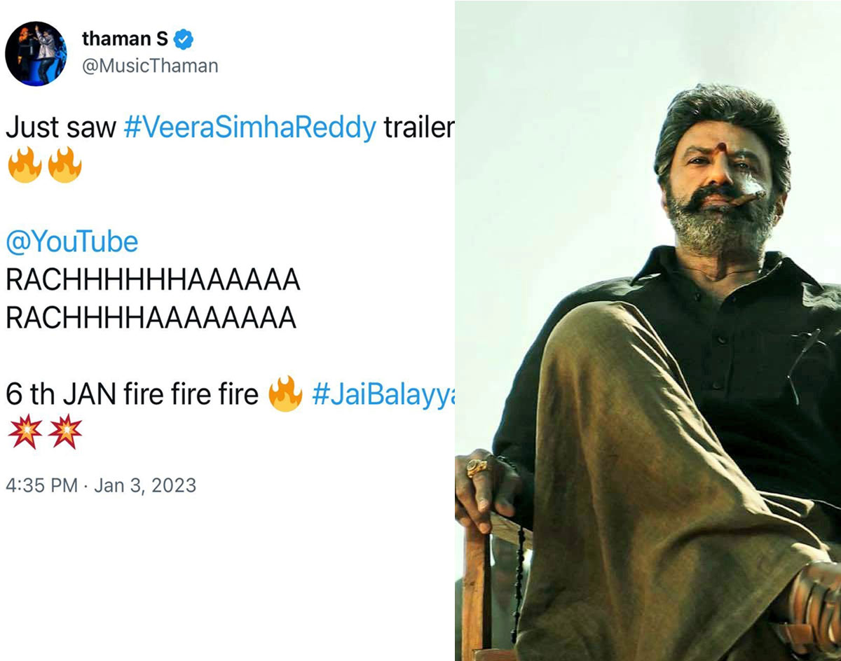 Thaman on Veera Simha Reddy trailer thaman,veera simha reddy trailer