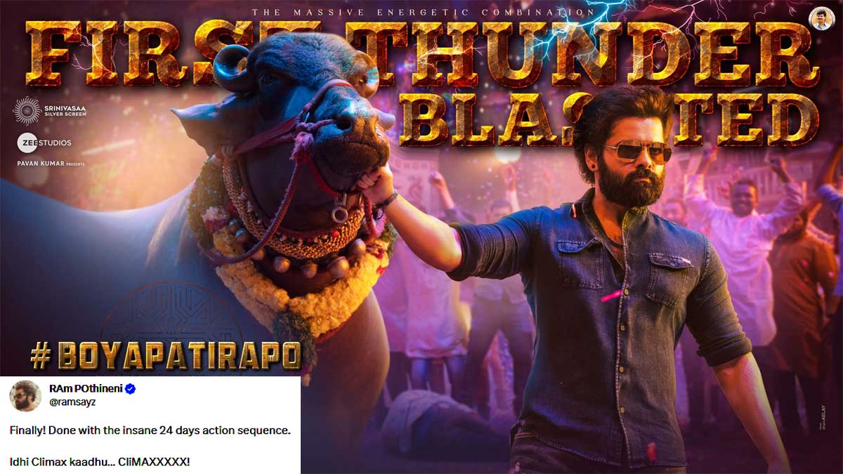 Ram is done with an insane climax. Ram is starring in the direction of Boyapati Srinu. The project is generating immense interest among movie lovers.rnAlready the film's glimpse drove the masses crazy with the high-octane scenes and dialogues...